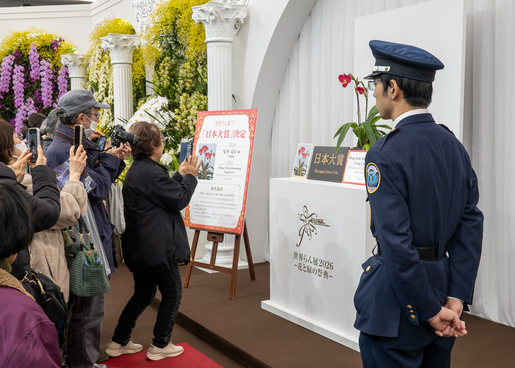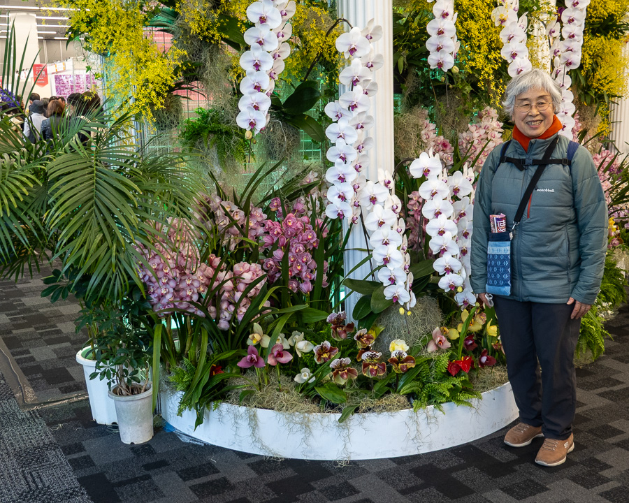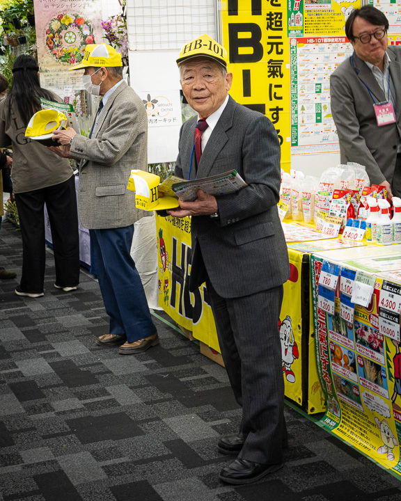 February 10, 2026 administrator Tokyo Orchid and Flower Show Grand Prix winning flower Posing with an arrangement Another pose The show included a large market offering plants and gardening-related merchandise. I scored one of those hats for HB-101 plant food.