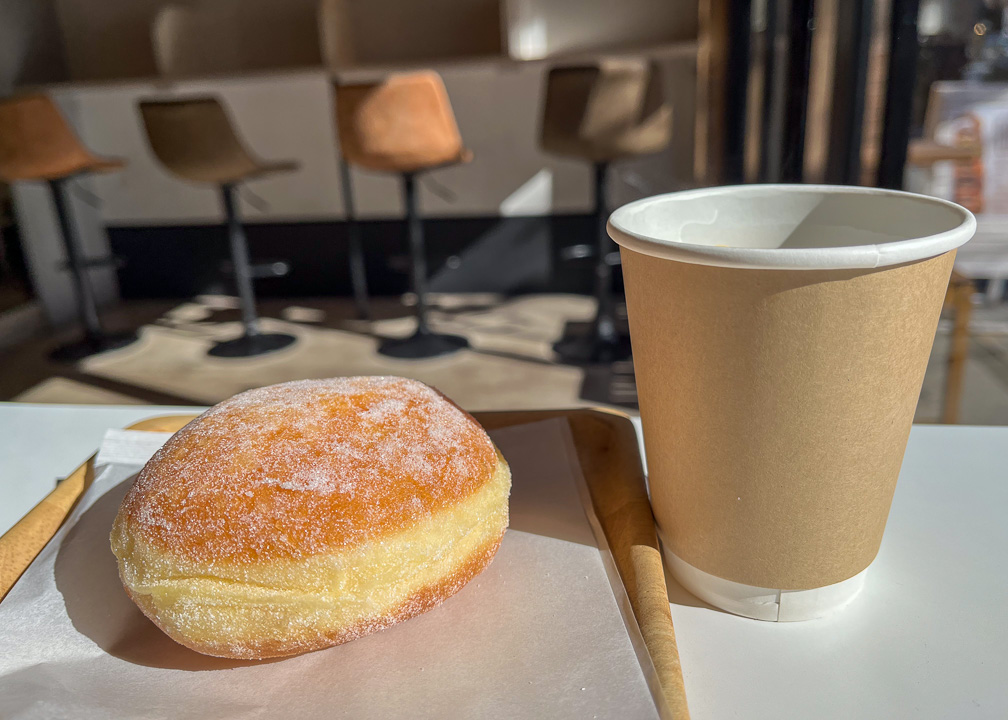 …cute. A latte and a donut from the second-floor cafe